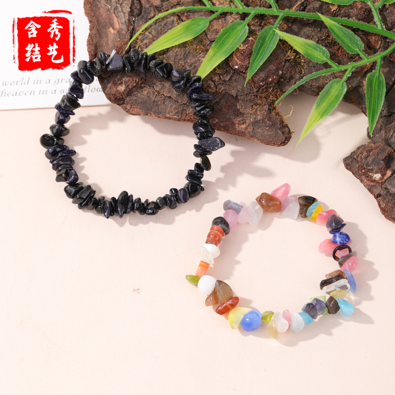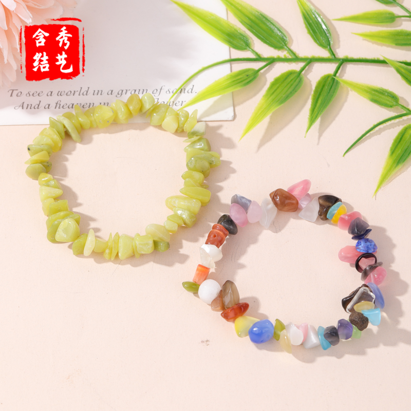 天然绿色系蓝色系碎石玛瑙水晶手串 多色搭配高品质时尚百搭 手饰