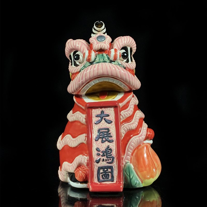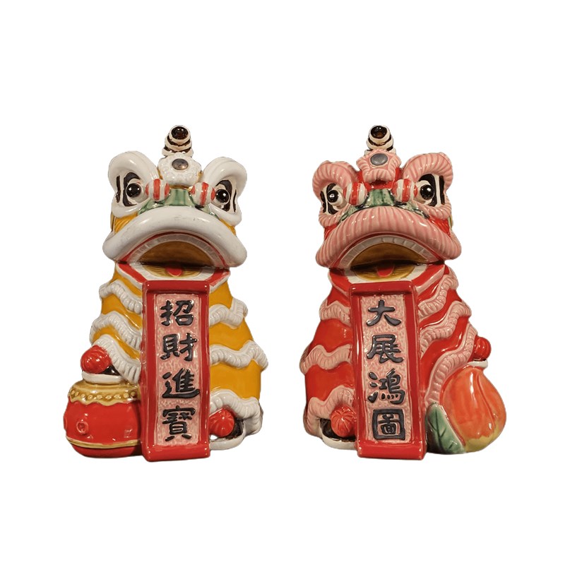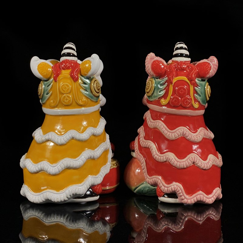 石湾陶瓷醒狮摆件家居装饰客厅玄关舞狮摆设乔迁新居礼物