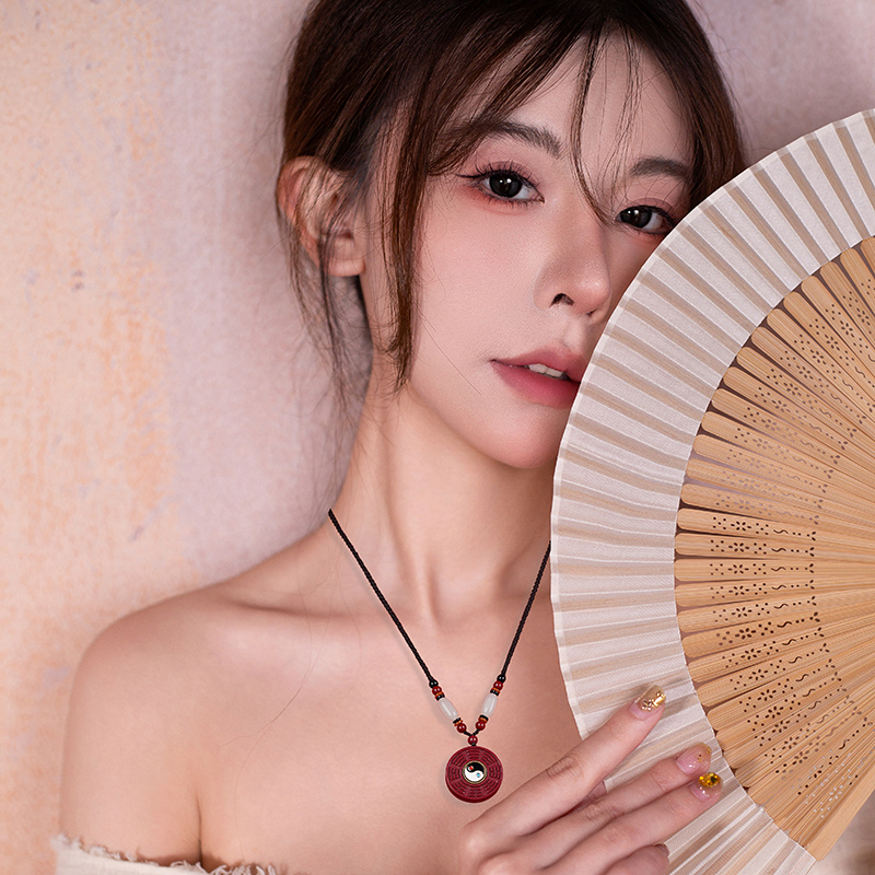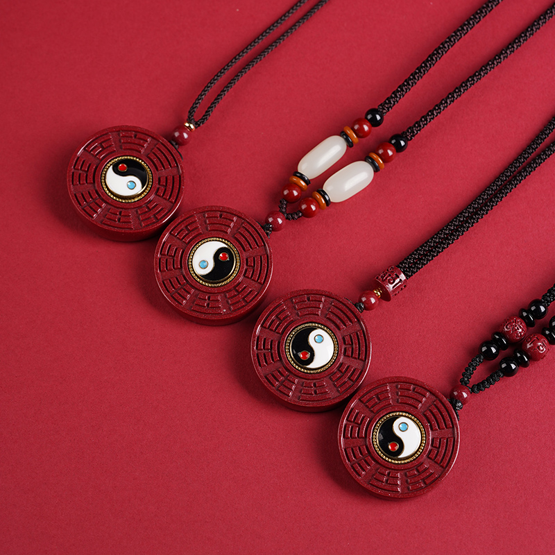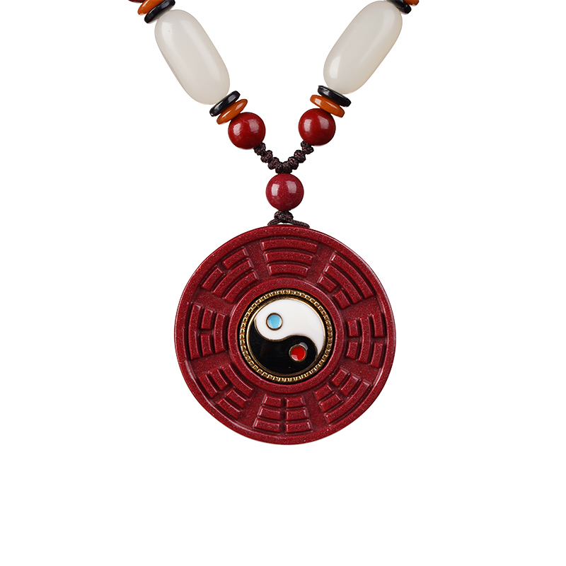 天然正品原矿朱砂太极八卦吊坠女本命年项链毛衣链挂件饰品礼物男