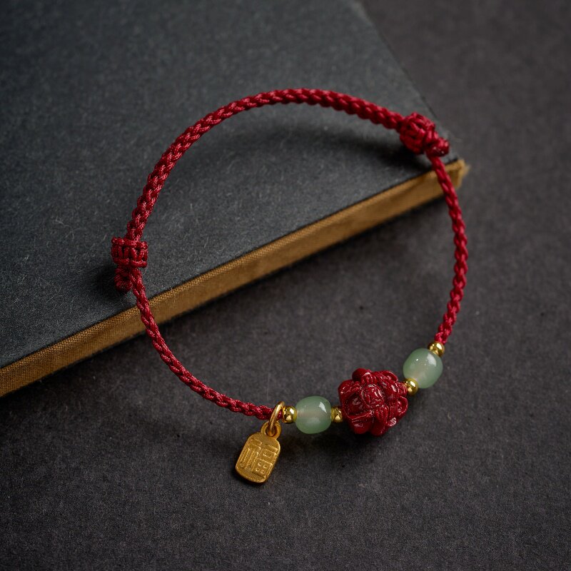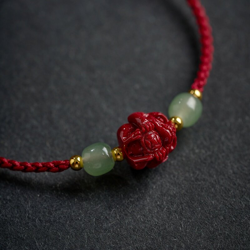 十二生肖朱砂手串本命年好运红绳手链和田玉转运珠祝福牌手环男女