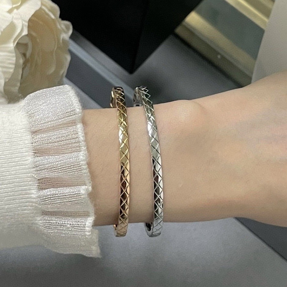 小众珠宝工艺CNC雕刻新款窄版菱格无钻手镯光金高级格纹设计手环.