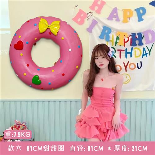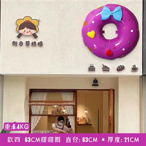 网红仿真卡通甜甜圈模型雕塑壁挂甜品蛋糕店奶茶店门头玻璃钢装饰