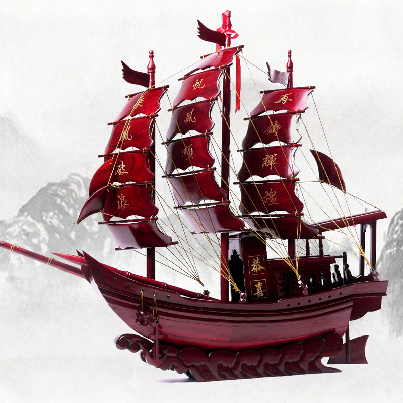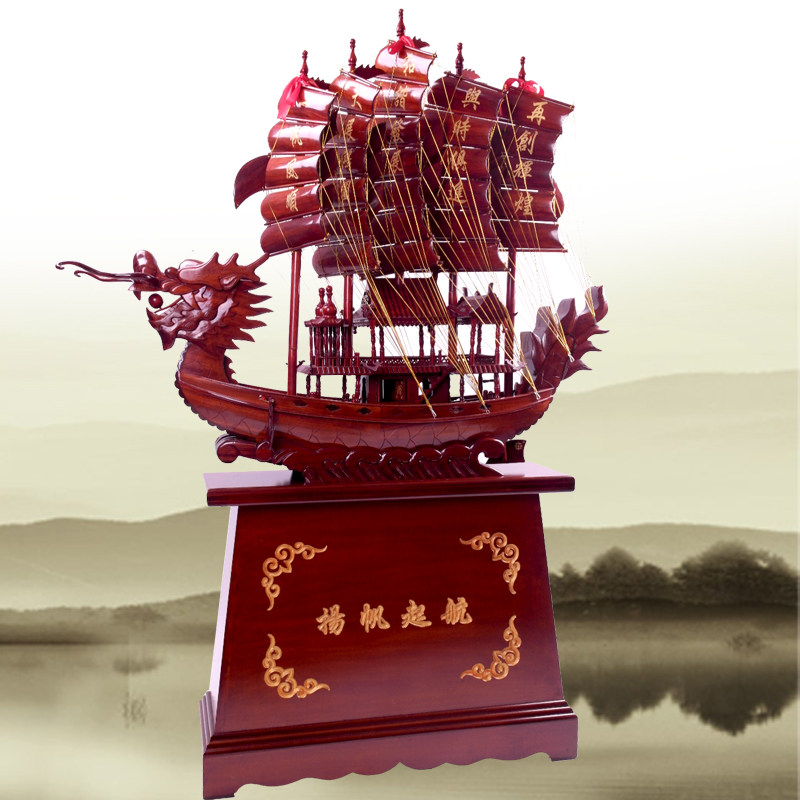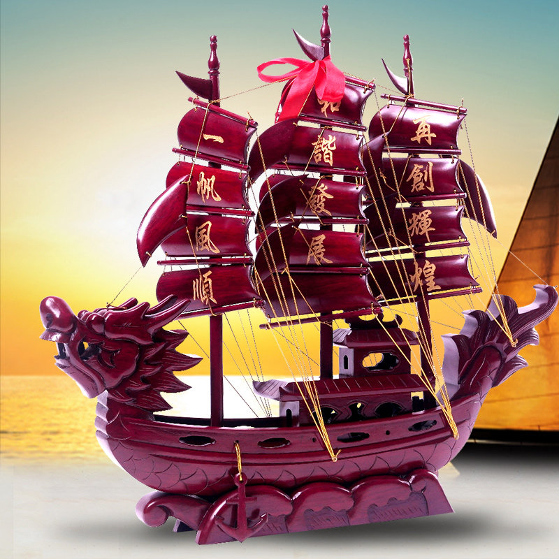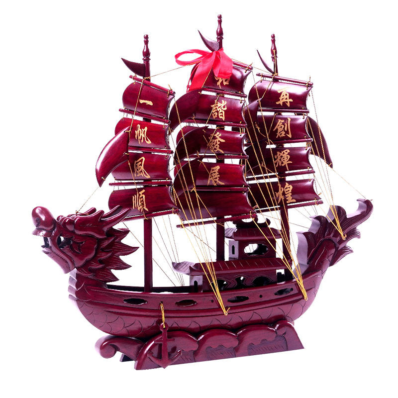 红木一帆风顺帆船摆件家居办公室装饰木质工艺品龙船公司开业礼品
