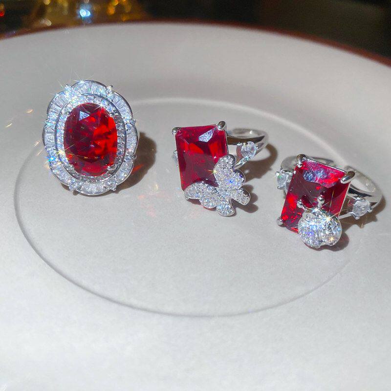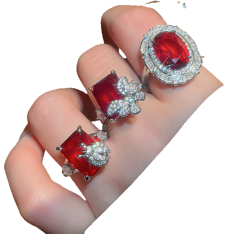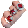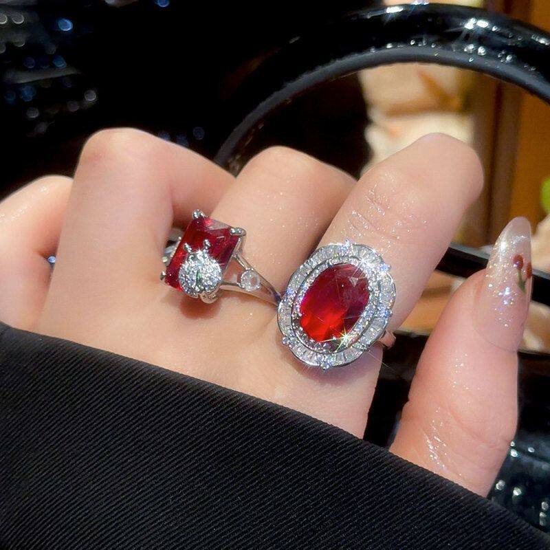 宫廷轻奢戒指女仿真红色豪红宝石开口优雅戒满钻高级感食指镶百搭