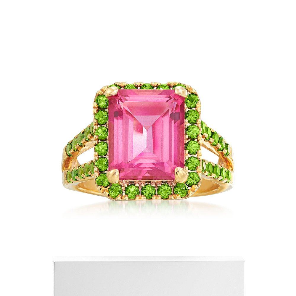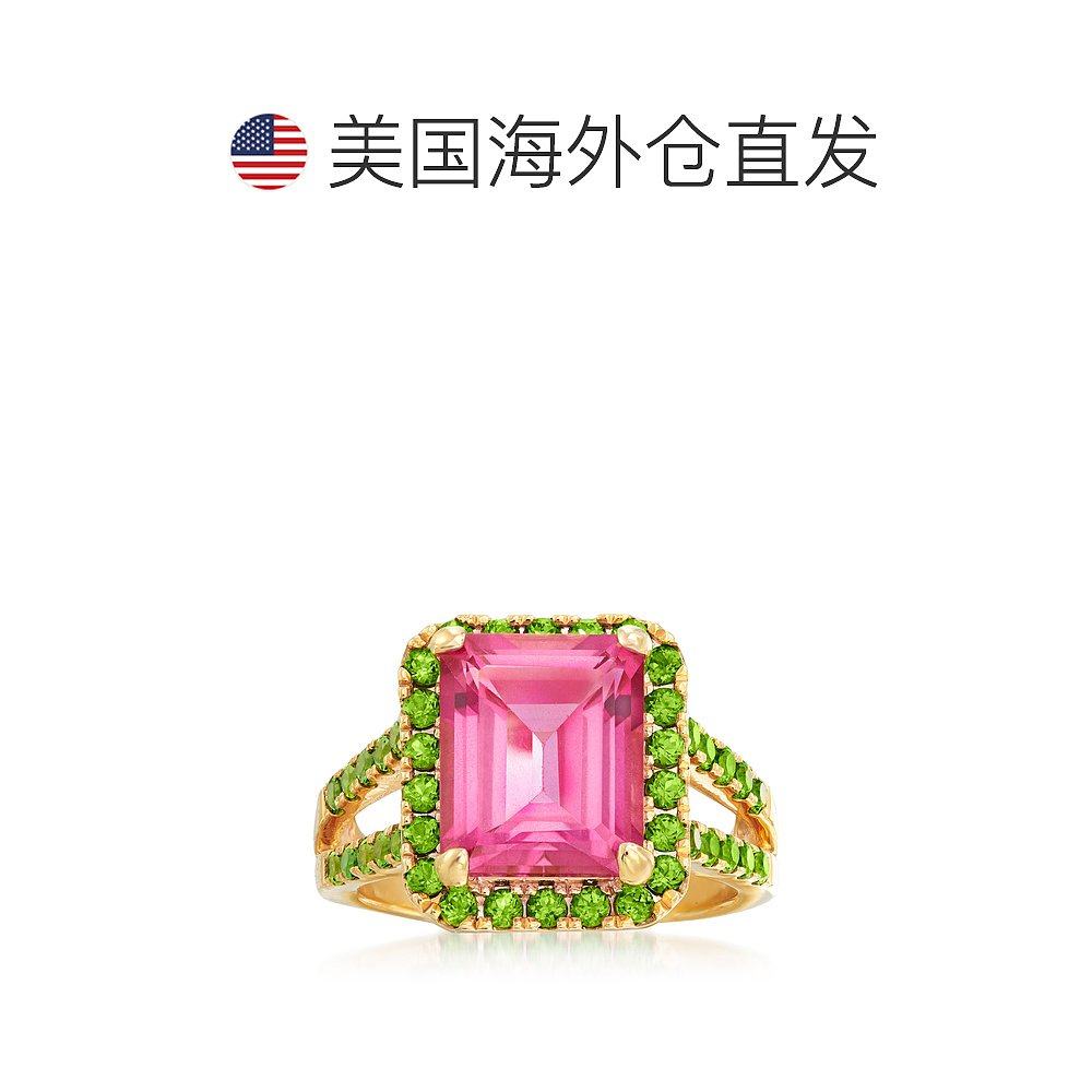 自营 Ross-Simons 18 克拉金粉红色托帕石和绿色铬透辉石戒指 粉