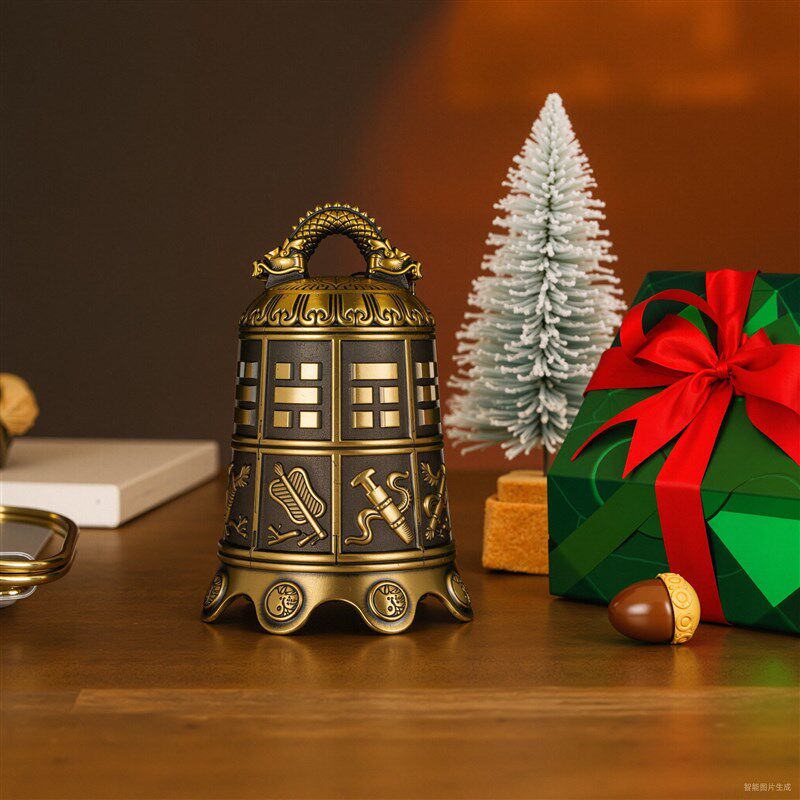 铜八仙法器寺庙铜钟摆件镇屋八宝铜铃铛挂件平安钟安宅家居装饰