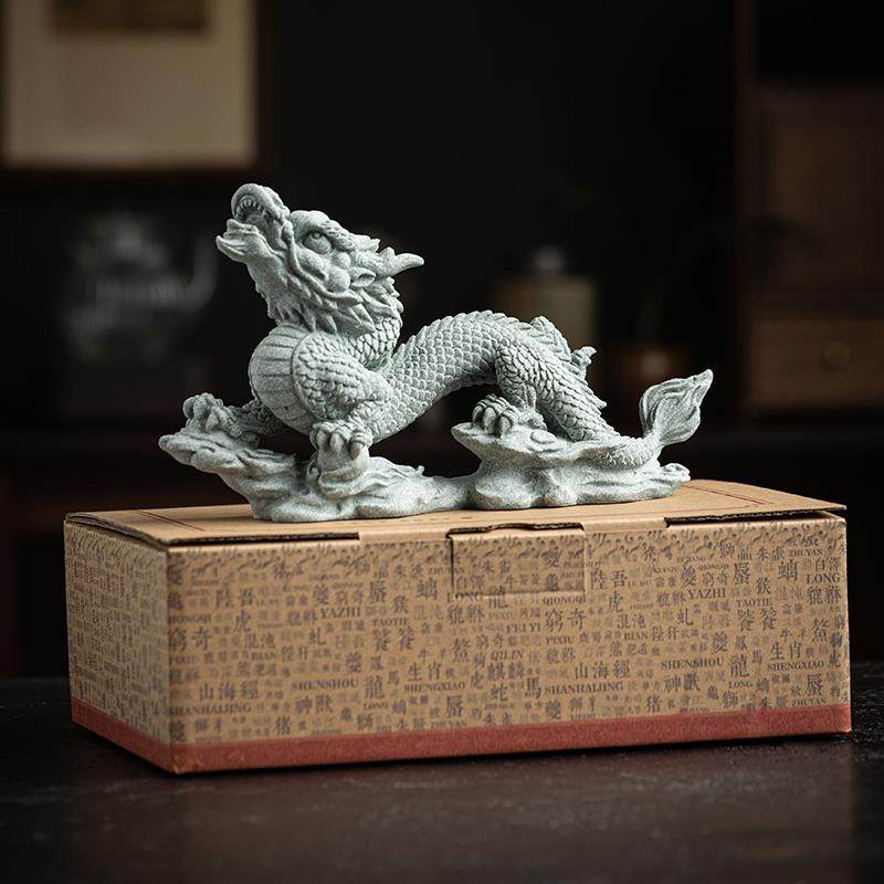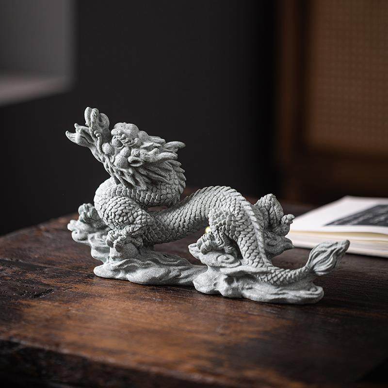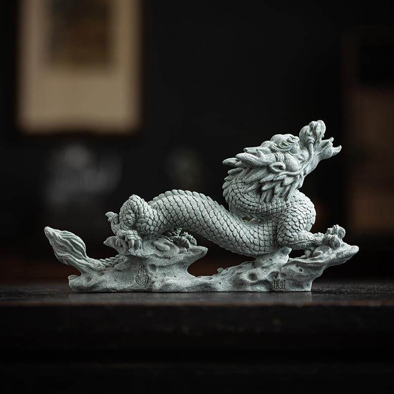 创意办公客厅青砂石招财生肖龙瑞兽祥龙鱼缸造景沉底实心装饰摆件