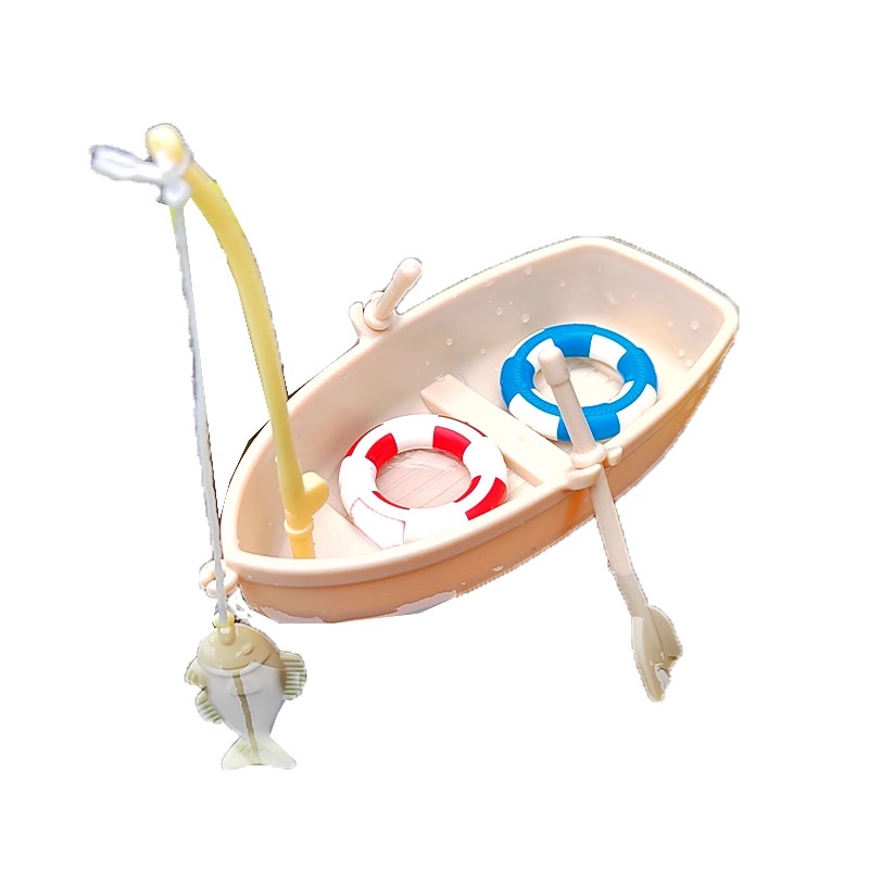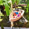 迷你仿真漂浮小船 游泳圈钓鱼渔船鱼缸造景模型玩具微景观diy摆件