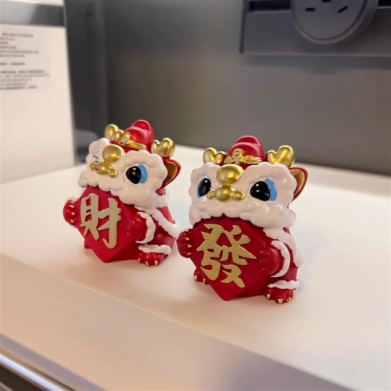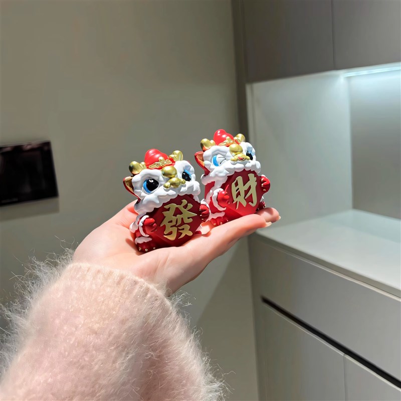 国潮醒狮摆件玄关客厅新中式新年招财红色喜庆麒麟装饰乔迁礼物