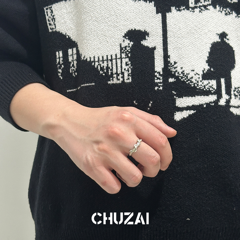 CHUZAI灵蛇戒指轻奢小众简约男款素圈设计感个性素圈女指环食指戒