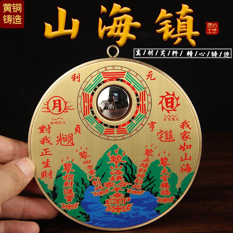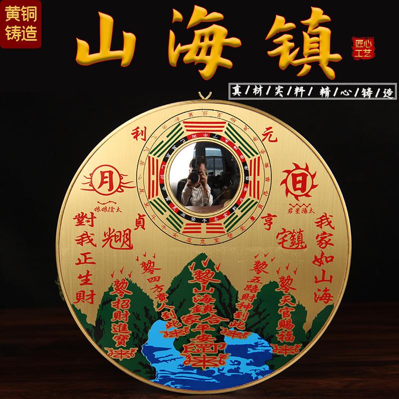 山海镇纯黄铜八卦镜客厅摆件室外大门窗户室内挂件山水镇三海镇图