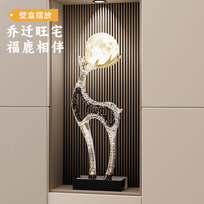 招财鹿电视柜装饰摆件轻奢高档客厅玄关柜壁龛氛围灯乔迁新居礼物