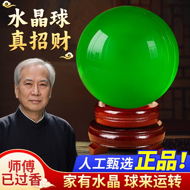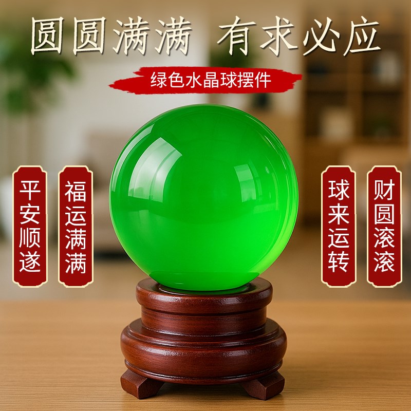 绿色水晶球摆件可旋转透明玻璃球招财黄色水晶球家居R装饰客厅开