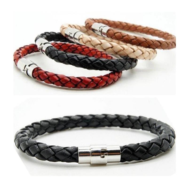 Simple Design Mens Leather Bracelet Multicolor Stainless St