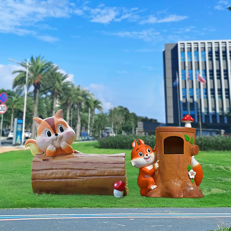 卡通动物垃圾桶玻璃钢雕塑户外公园椅园林景区果皮箱分类装饰摆件