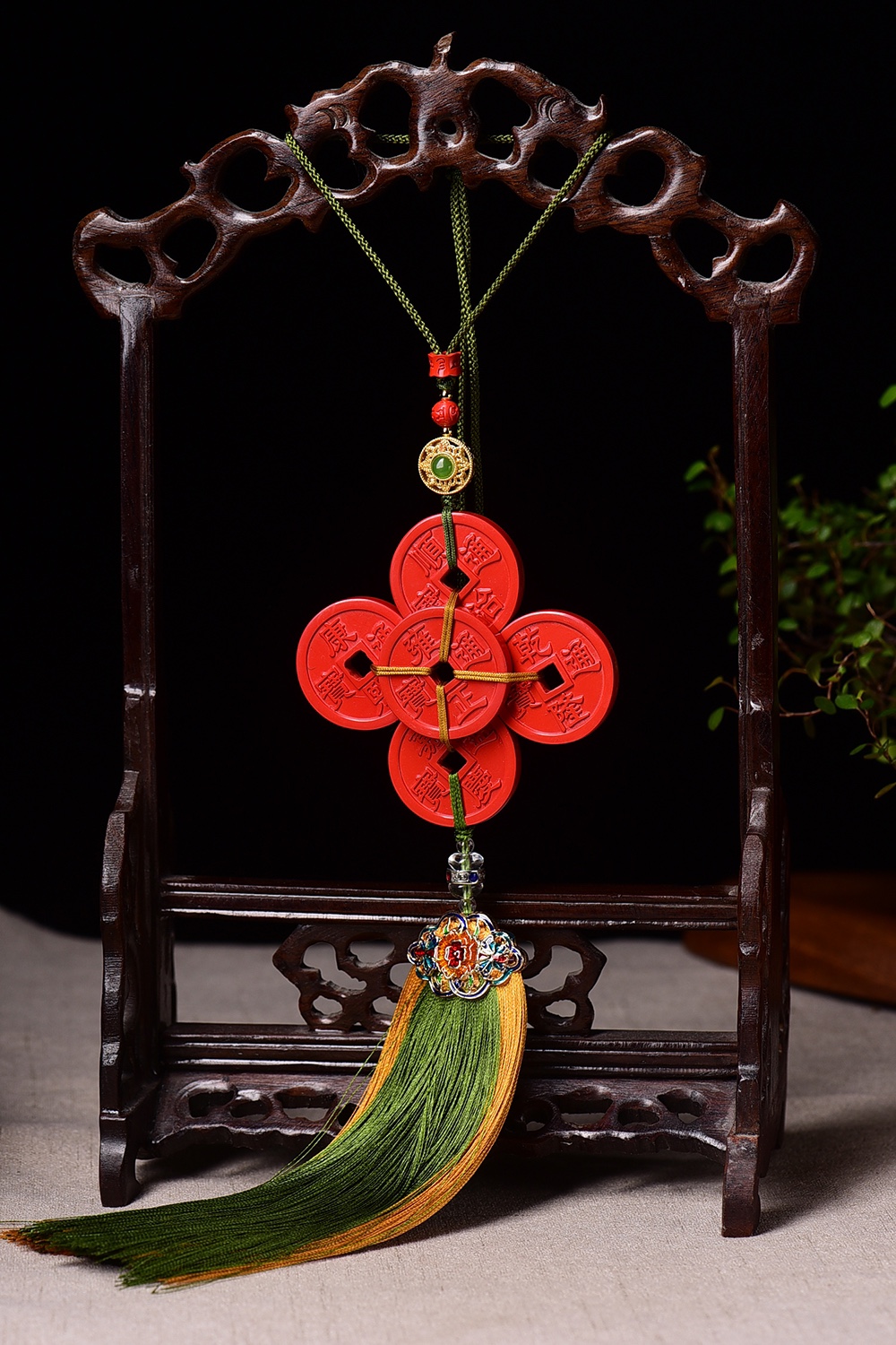 天然原矿朱砂挂饰红砂五帝钱汽车挂件车载流苏吊坠男女款出入平安