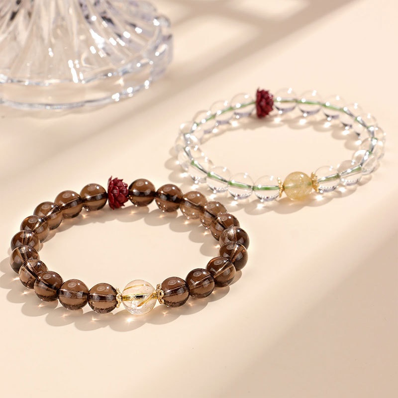 新品金发水晶情侣手链女小众百搭高级感原创茶晶手串首饰