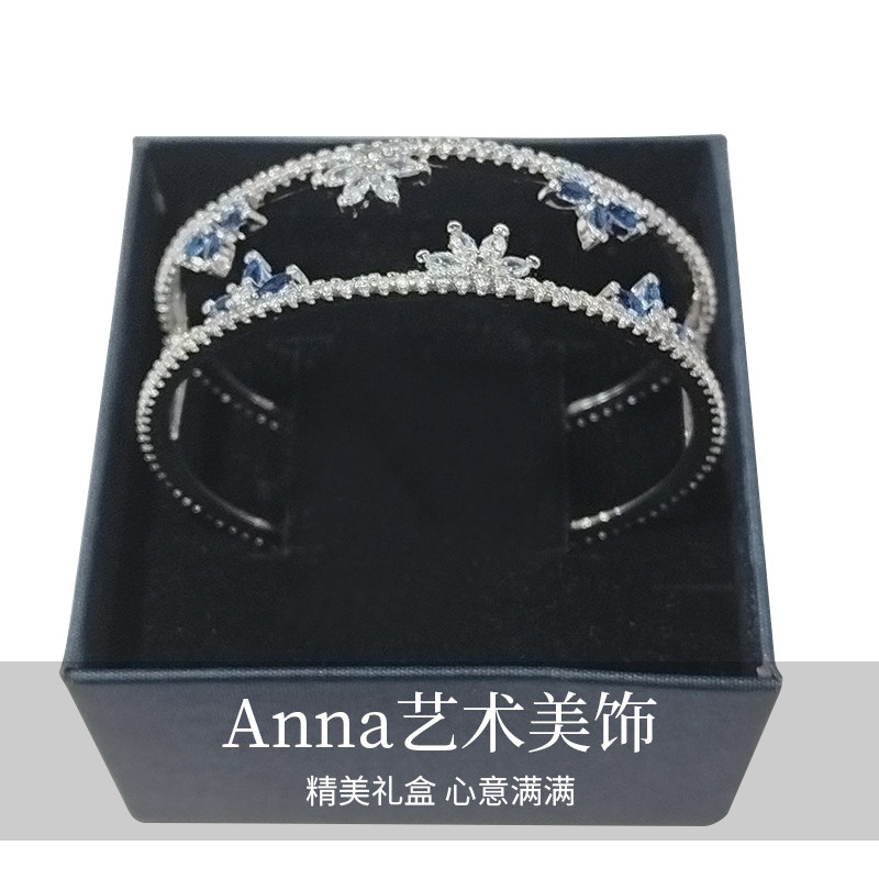 花朵镶钻镂空开口手镯Anna艺术美饰时尚大牌感尖晶石奢华高级手镯