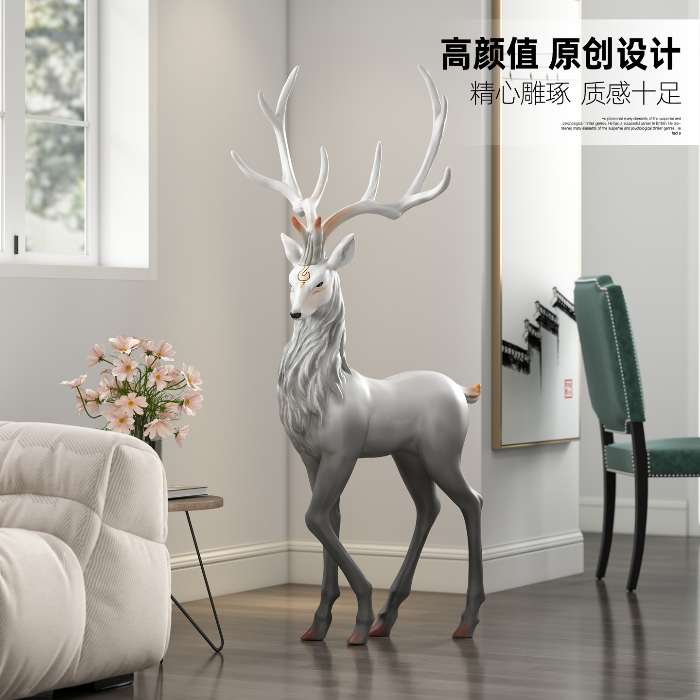 创意麋鹿大型落地摆件电视柜帮家居饰品办公室装饰品乔迁新居礼品