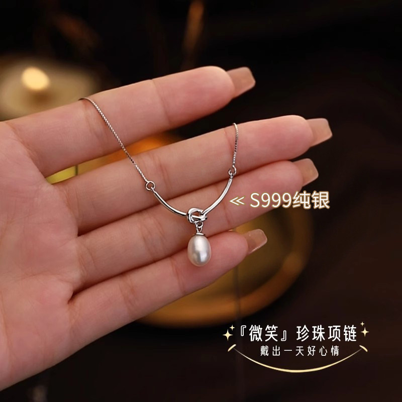 正品999纯银天然巴洛克珍珠项链女士微笑轻奢小众2025新款爆款