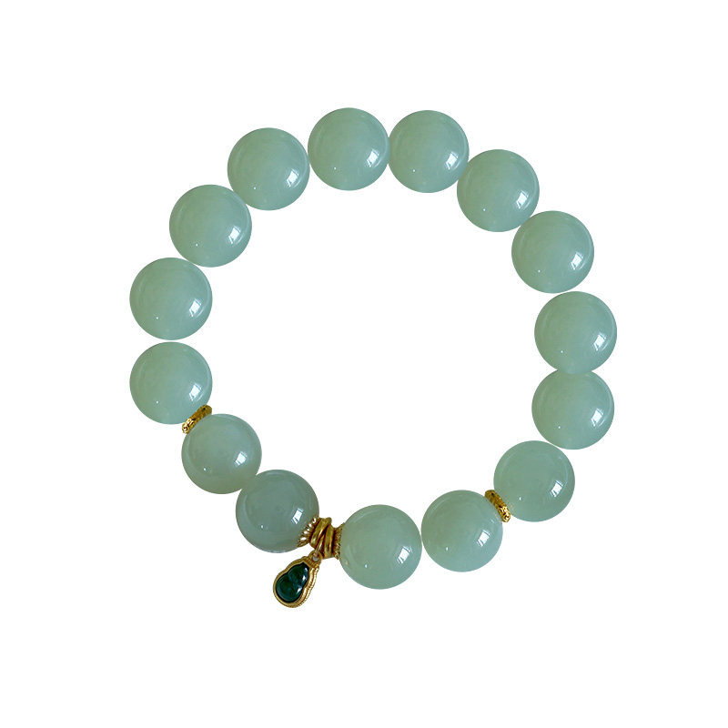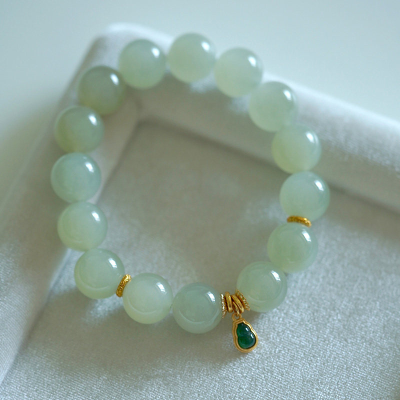 缘物珠宝 水晶葡萄 天然和田玉新品青白玉手串女 12mm大圆珠手串
