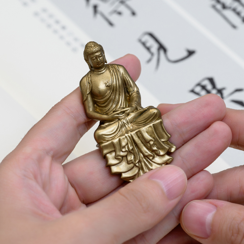 简修行西方三圣佛像阿弥陀佛佛像纯黄铜坐像随身本命佛家居装饰品