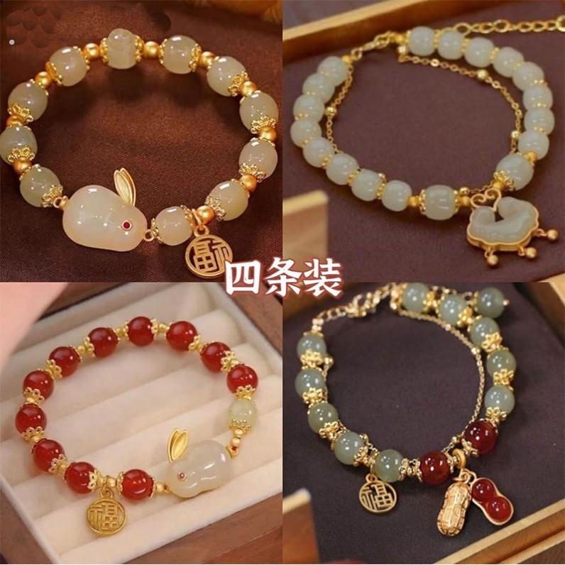 儿童玉兔手錬女童好运兔子本命年手镯红色兔年首饰送女孩生日礼物