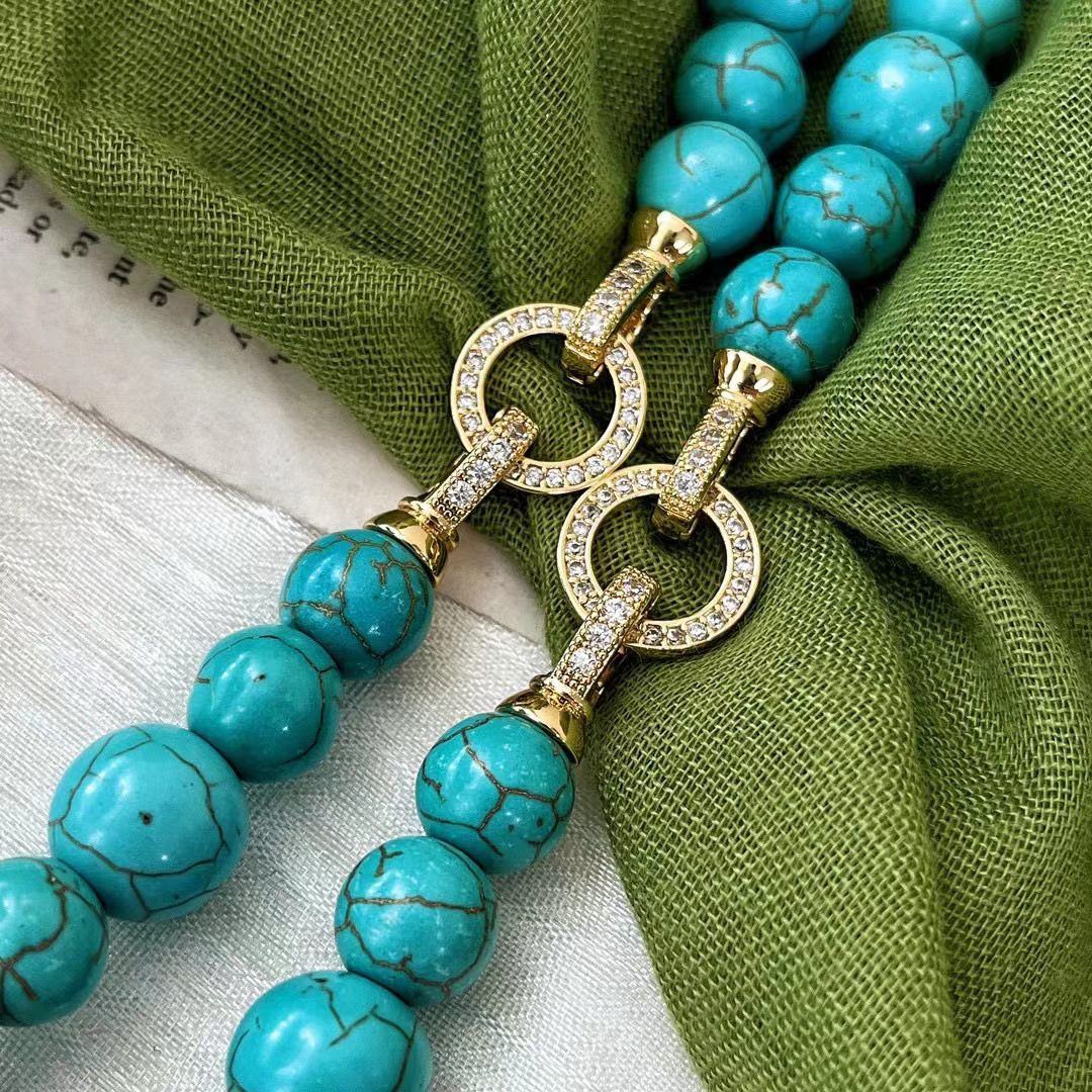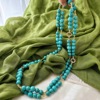 新中式复古绿人造绿松石小长链毛衣链项链女轻奢小众氛围感颈链