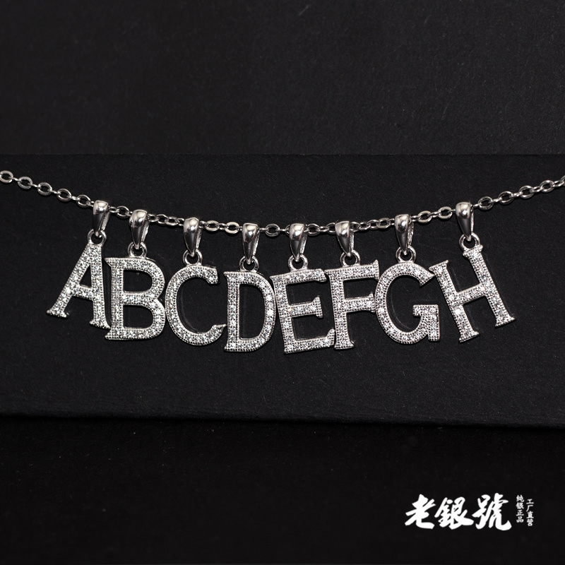 925纯银镶钻英文字母项链手链吊坠挂饰日韩国时尚女银配饰礼S13C