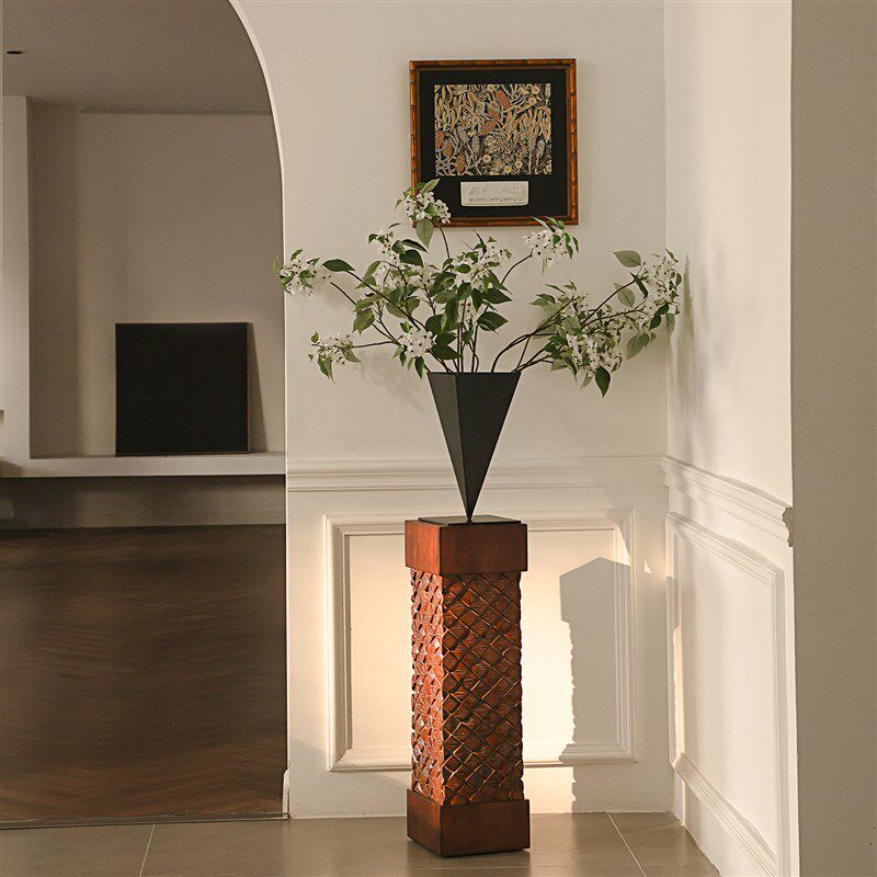 形上实木墩子花架底座雕塑艺术品摆件民宿酒店落地玄关装饰台柱子