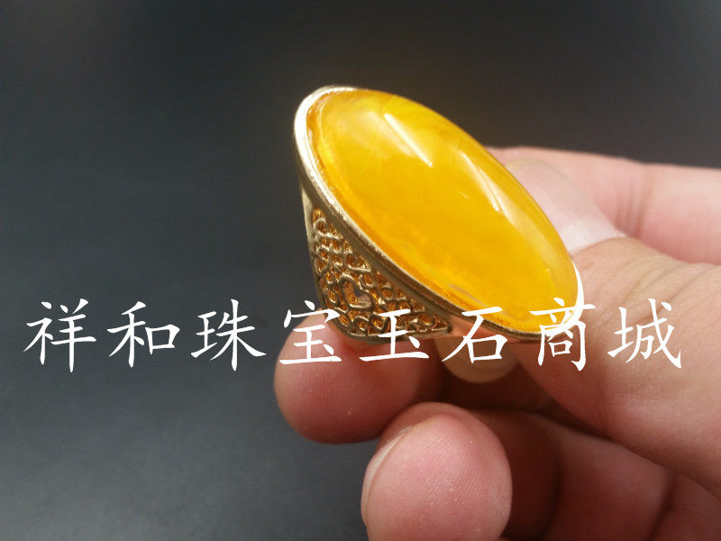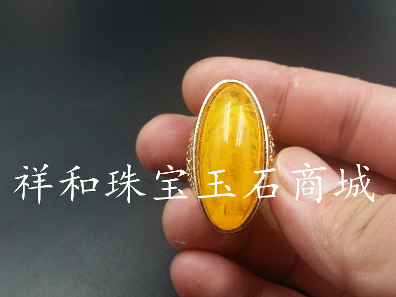 高档精美二代蜜蜡蛋面戒指浅黄色蜜蜡戒指老蜜蜡戒指指环厂家直销