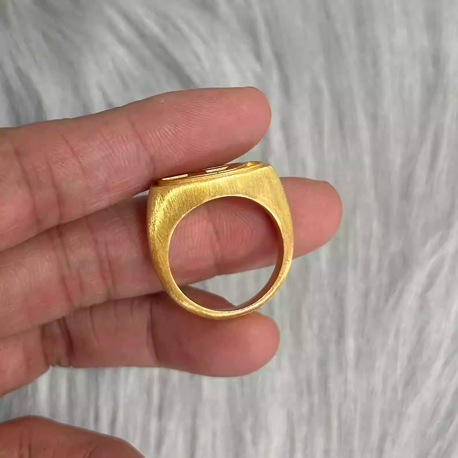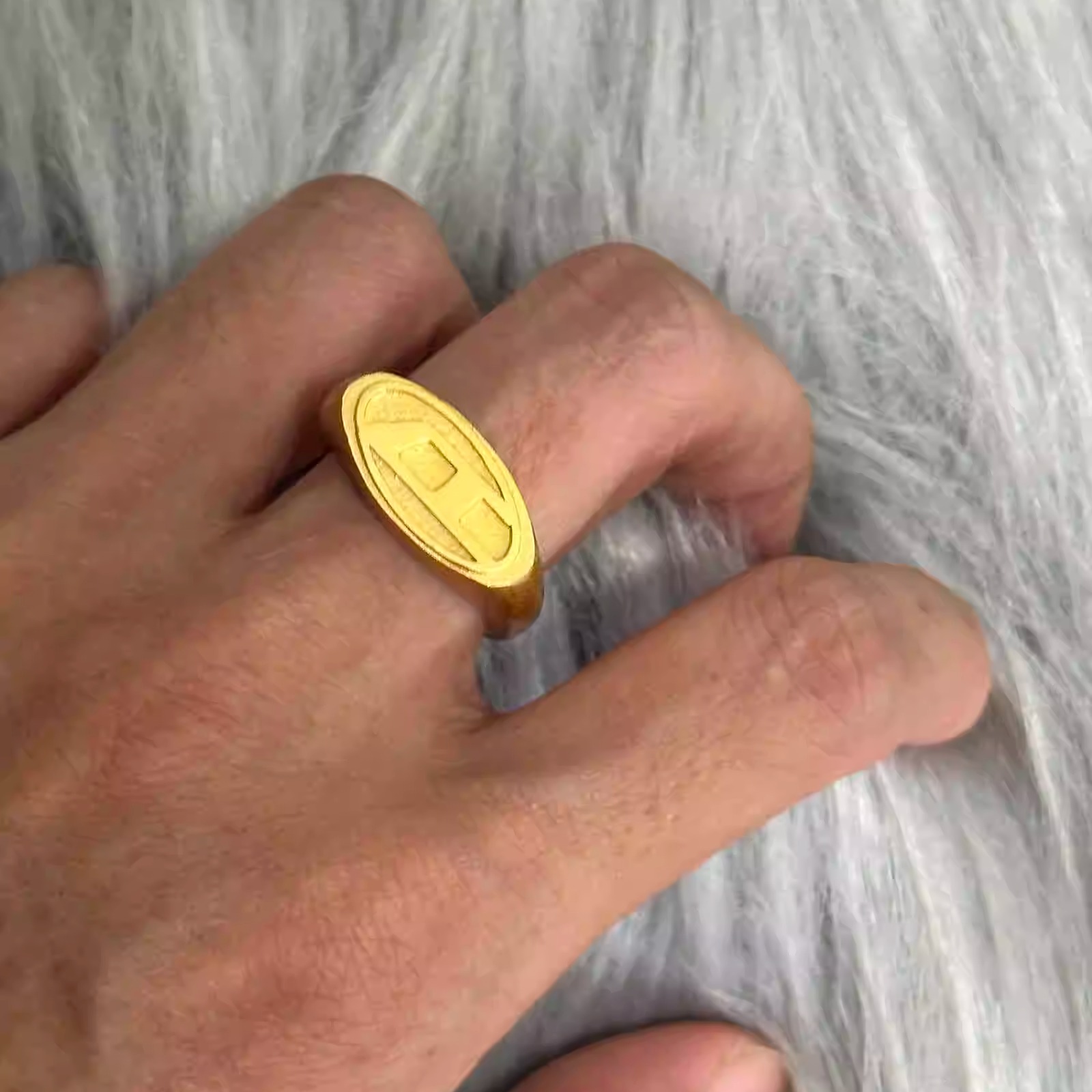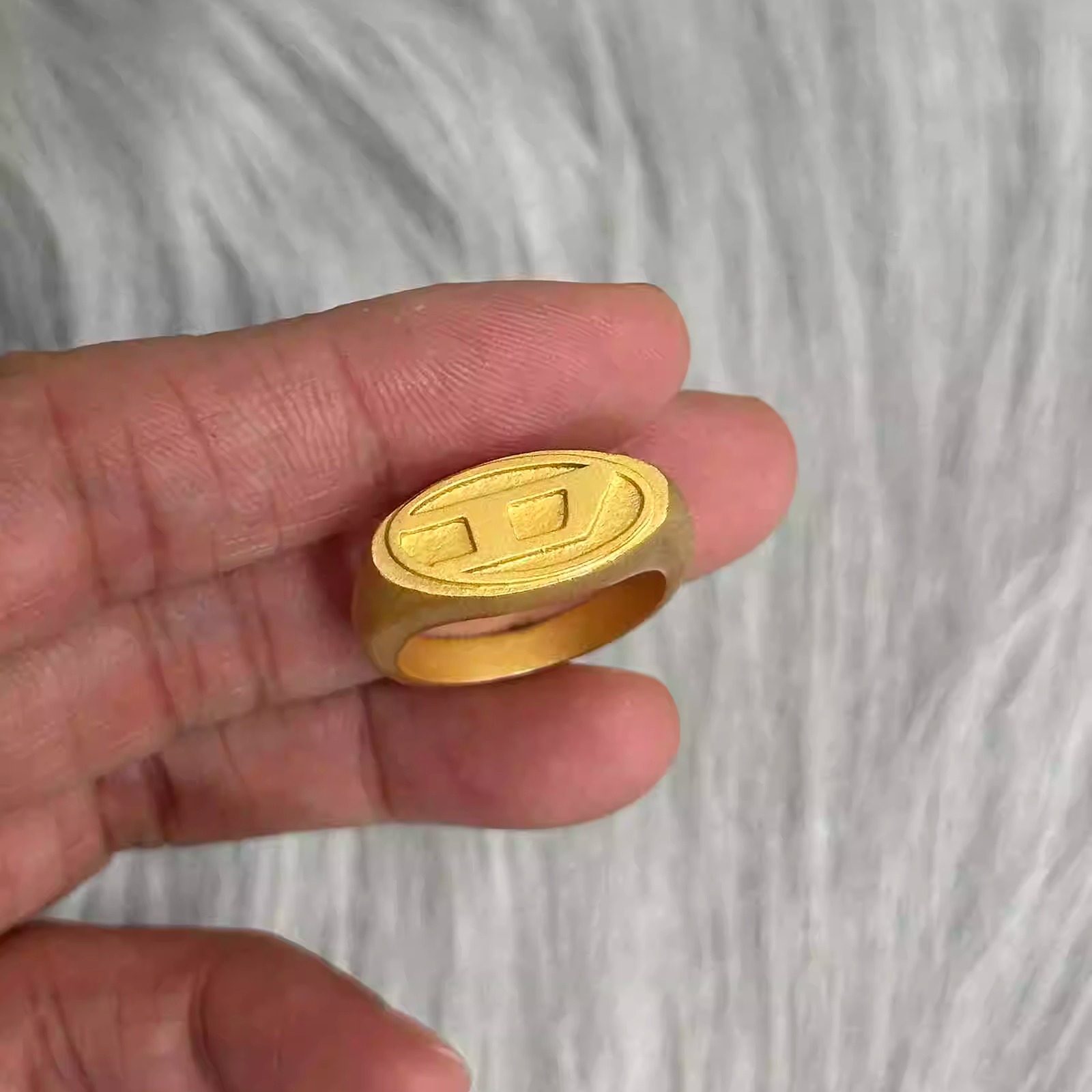 DE字sel黄镀金黄铜拉丝戒指简约个性素圈戒指男女同款椭圆定指环