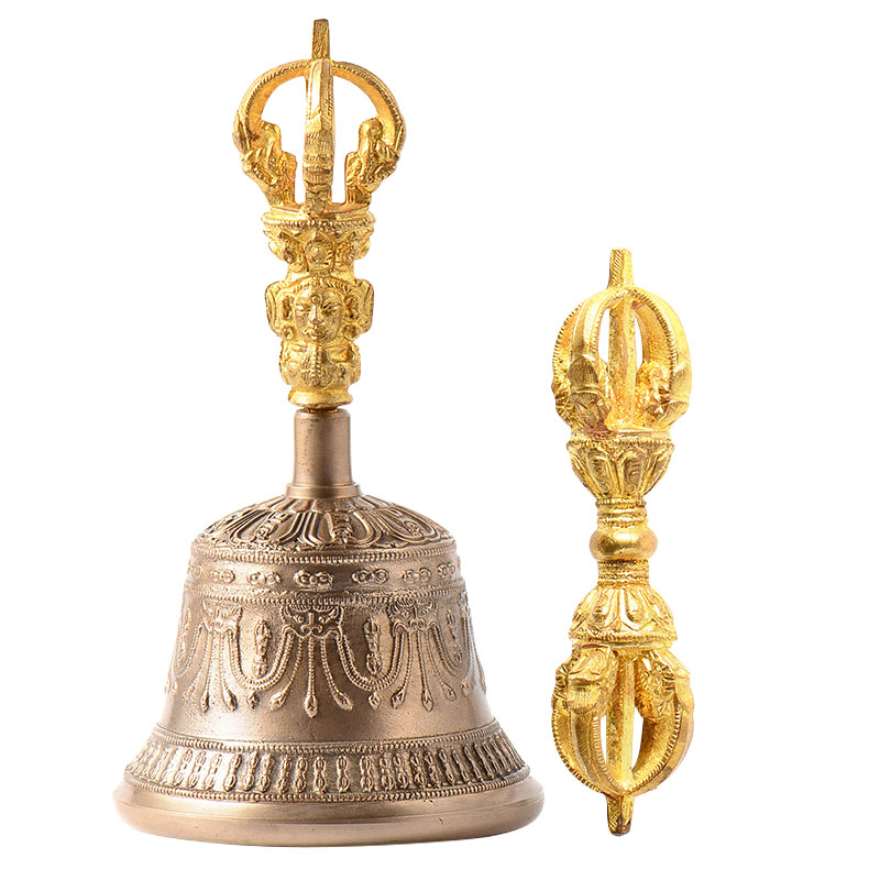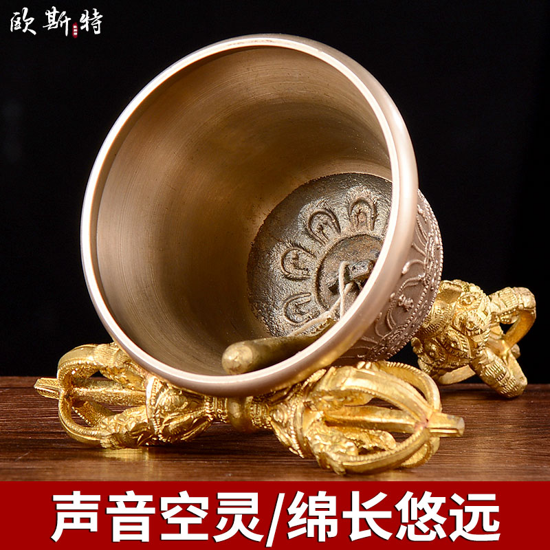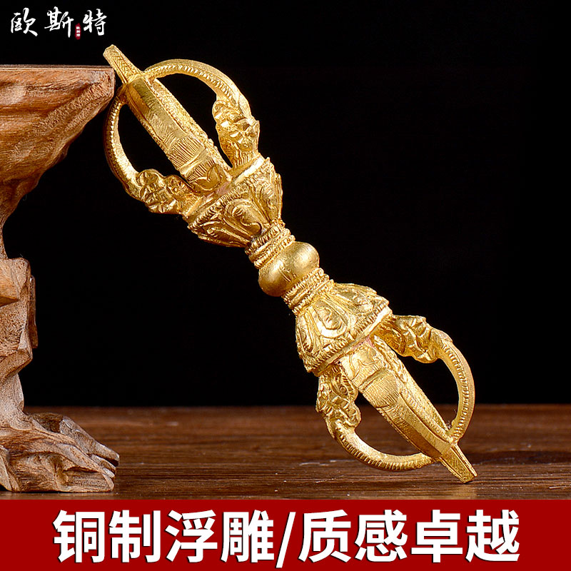 欧斯特 尼泊尔手工铜鎏金五股金刚铃 五钴铃杵佛具响铃铜铃铛摆件