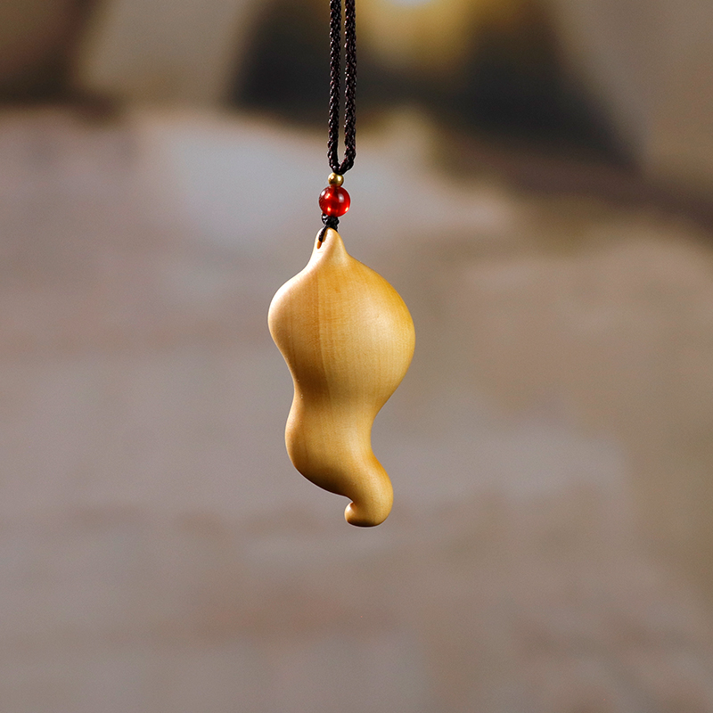 黄杨木雕荷叶观音中式脖挂吊坠手把件木质雕刻工艺品家居饰品挂件