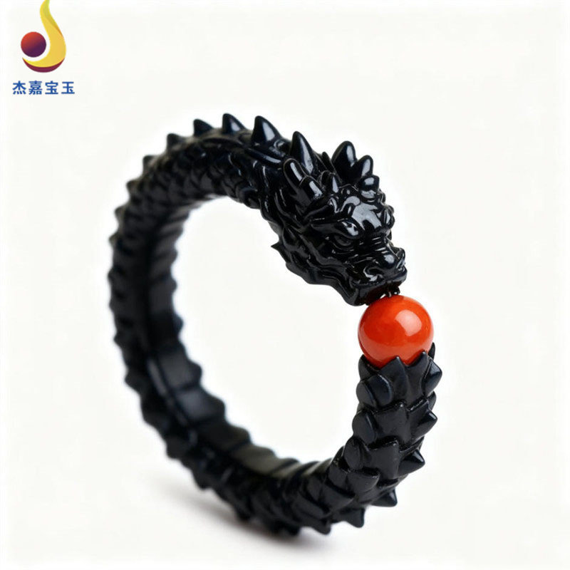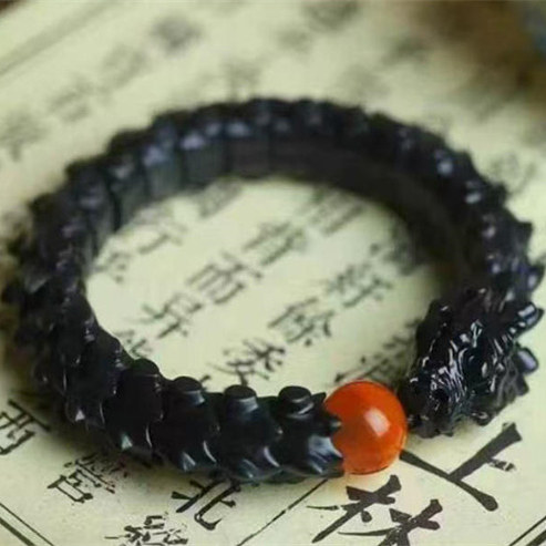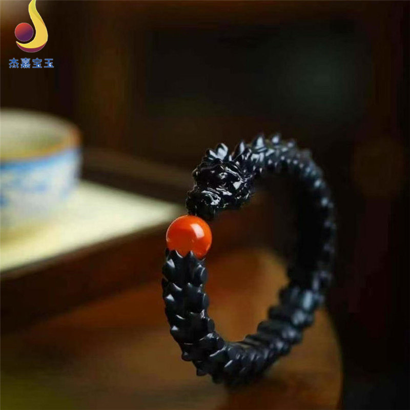 【龙的传人】新疆天然正品和田玉龙骨龙腾墨色盘龙手链玉石手串