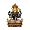 欧斯特 四臂观音铜像 尼泊尔进口铜镀金手工雕花客厅中式摆件10寸