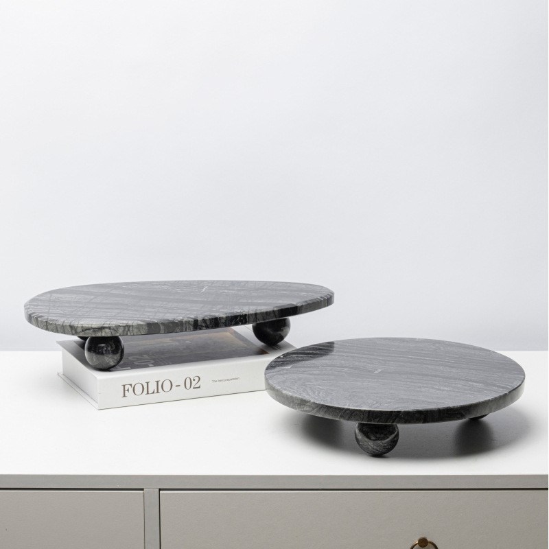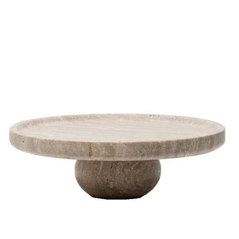 现代简约黄洞石托盘摆件洗手台茶几桌面收纳盘天然大理石装饰品