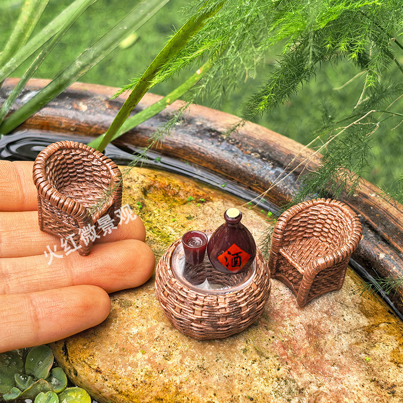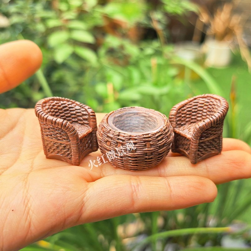 迷你仿真竹编藤桌子椅子微景观小摆件盆景造景装饰品沙盘手工材料