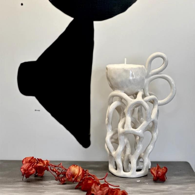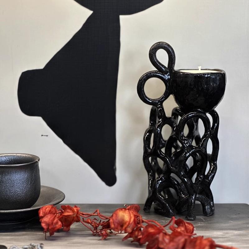 日式中古侘寂风小众手工泥条几何烛台陶瓷样板房间桌面摆件书房