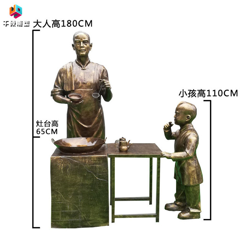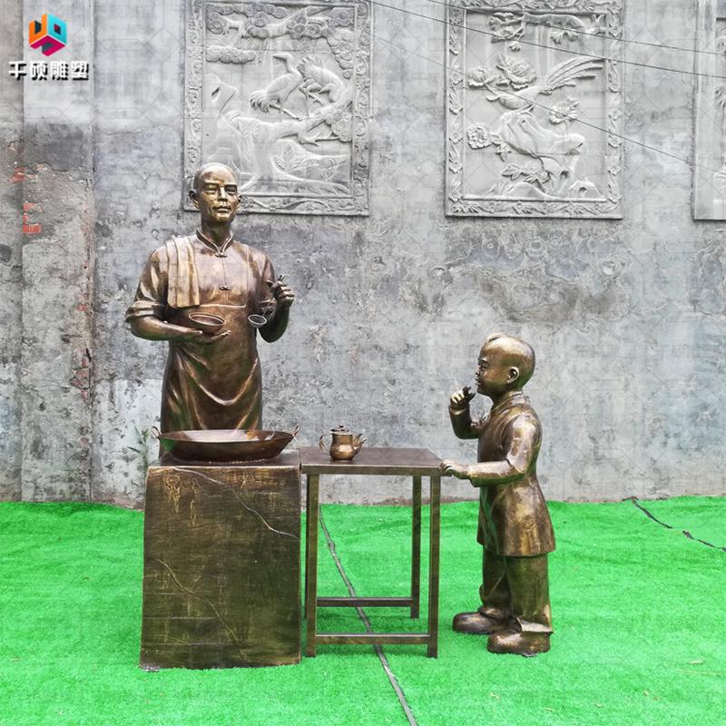 热销玻璃钢仿铜人物雕塑户外小吃步行街民俗小品景观装饰摆件
