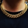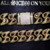 Mr.Blingggggg欧美嘻哈珠宝 15mm满钻混镶金红色腰果花情侣古巴链