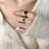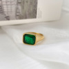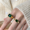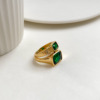 欧美时尚跨境大方钻锆石绿色钛钢镀金个性戒指指环中指食指不掉色