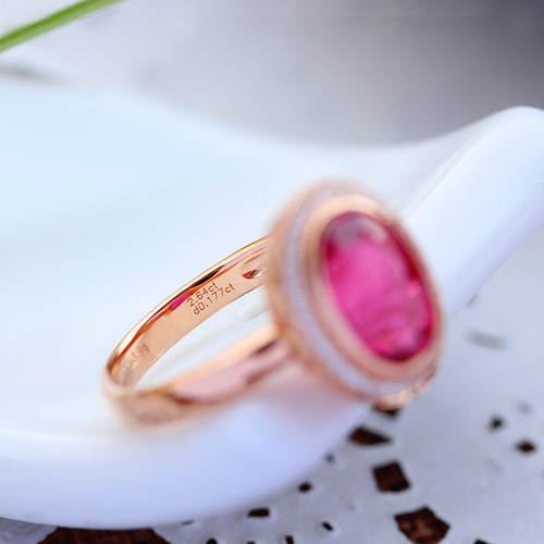 碧雅18K金镶嵌红碧玺戒指钻石群镶正品鸽血女款13号奢华证书1实拍