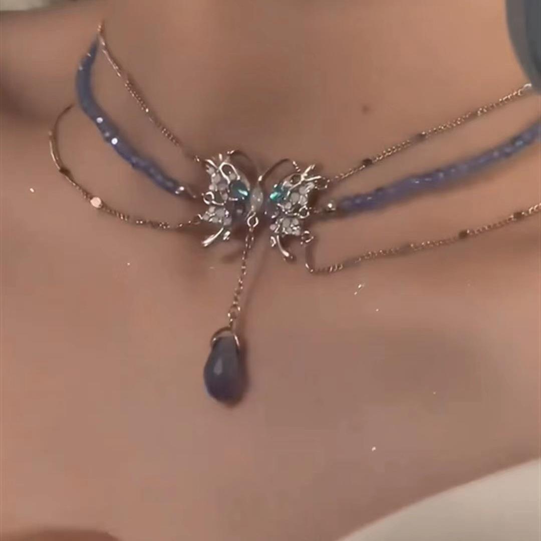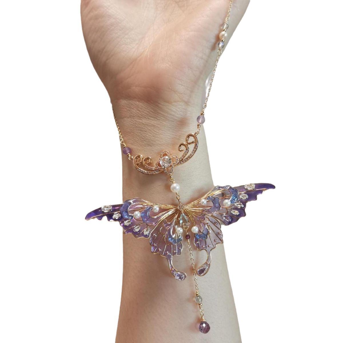 2023年新款紫色蝴蝶项链优雅精致氛围感精灵小众设计网红气质滴胶