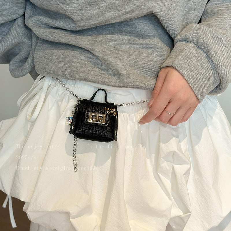 可爱减龄~黑色kt长款挂脖包包项链女精致卡通创意小众可斜跨配饰