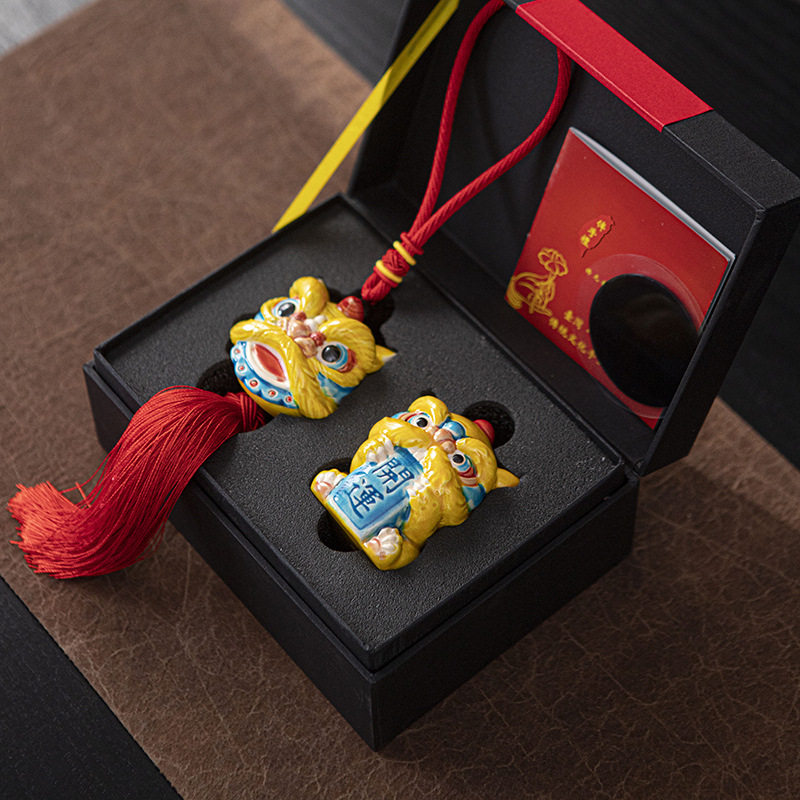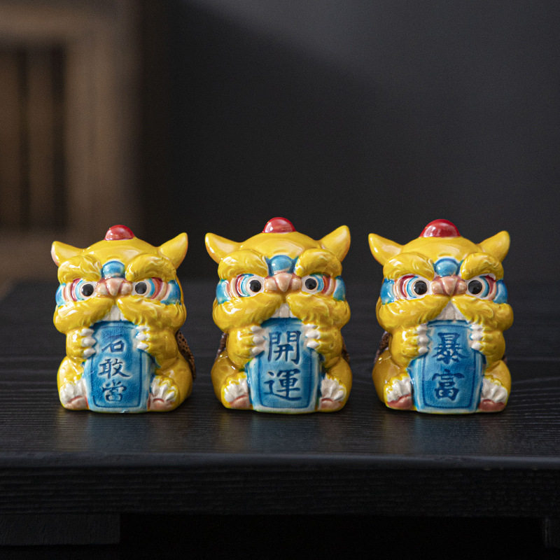 醒狮摆件国潮舞狮文创厦门交趾陶陶瓷工艺品客厅酒柜装饰品家居