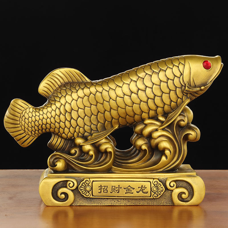 年年有鱼黄铜摆件招财金龙纯铜百财富余全铜金鱼工艺品客厅放酒柜