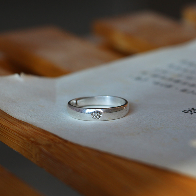 999纯银手工原创设计亮光梅花细戒指可调节大小送女友闺蜜礼物