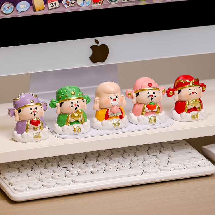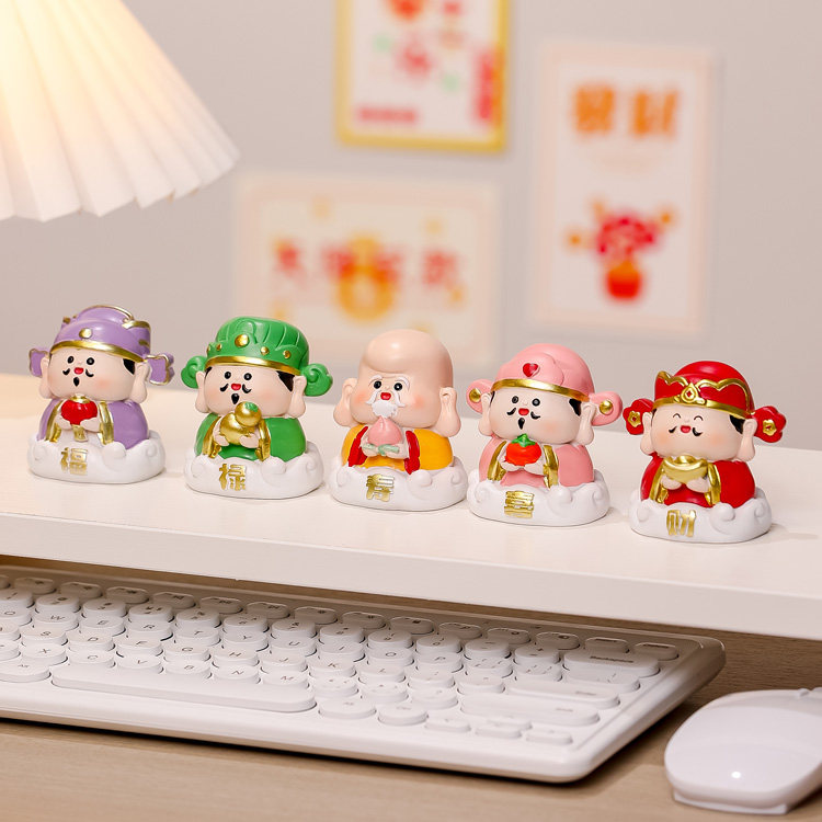 创意国潮神仙公仔五福临门五路财神爷小摆件办公室桌面装饰品
