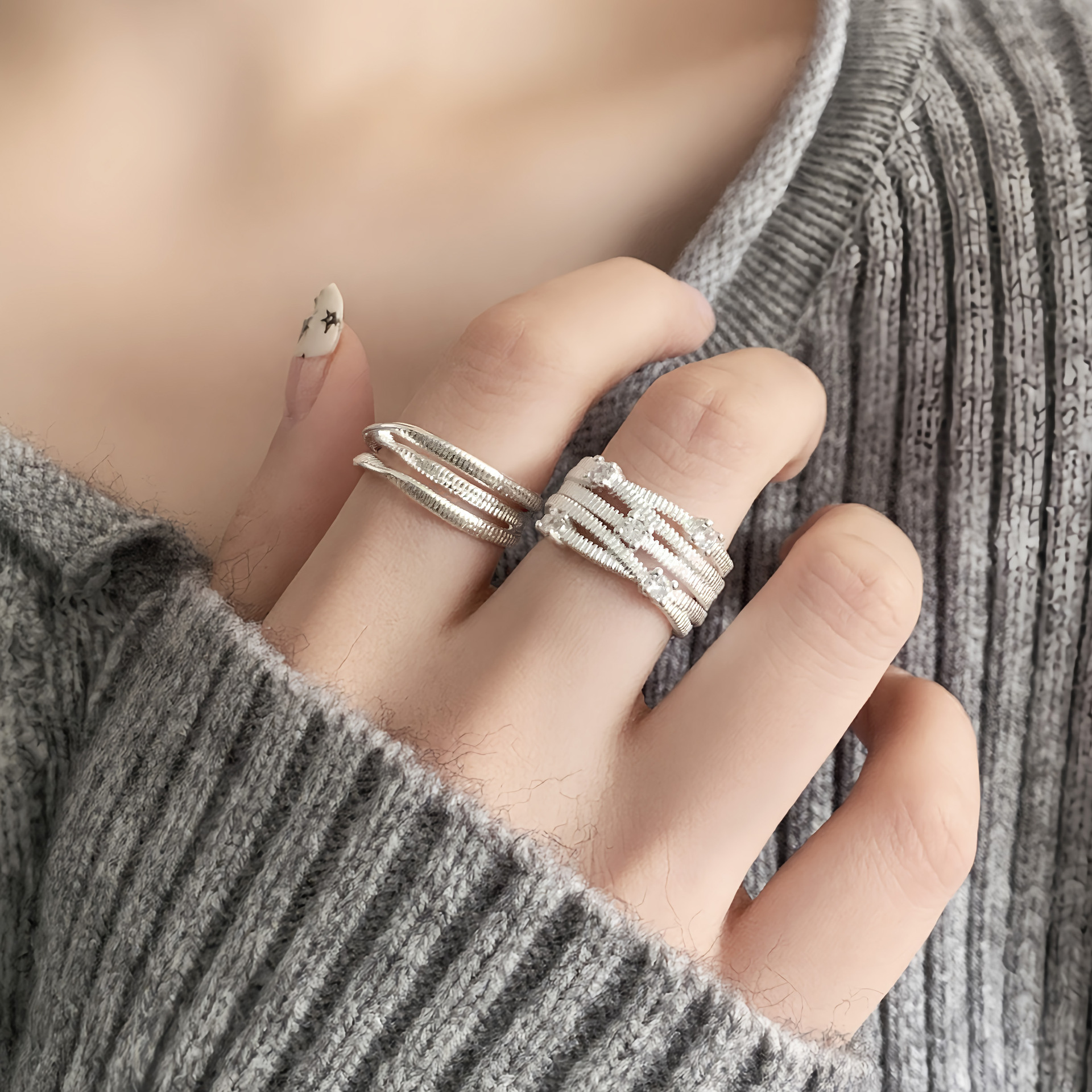 设计感线条交叉戒指女时尚简约精致缠绕开口指环百搭个性食指戒潮
